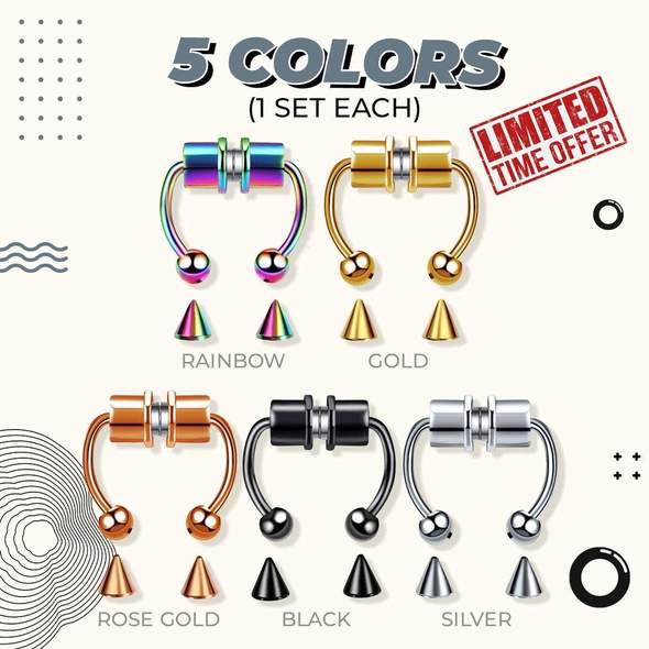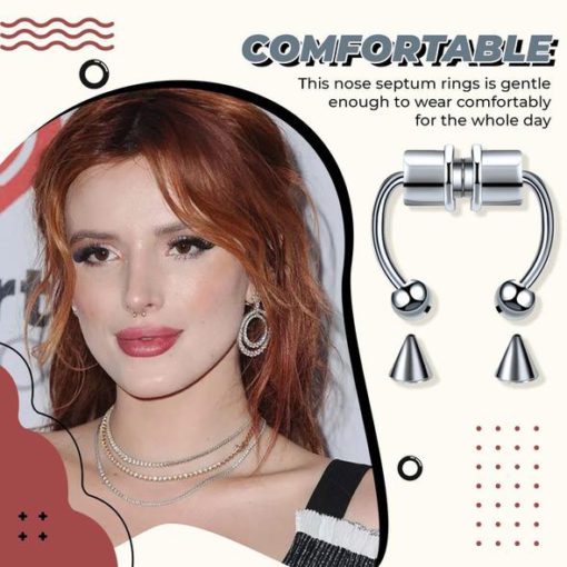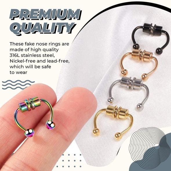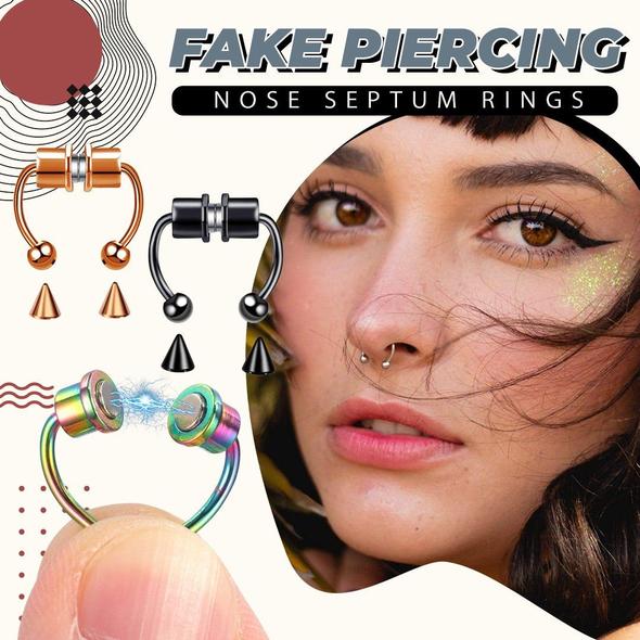 Scared of getting pierced? Get the look without the pain using our Fake Piercing Nose Septum Rings. It uses powerful magnets to stay securely locked, letting you wear it all day without pain or discomfort.