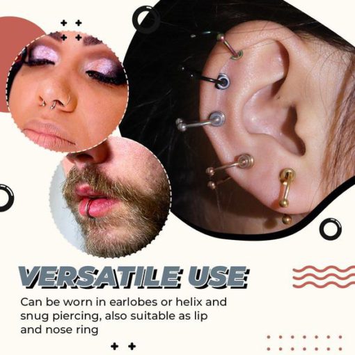 - Versatile Wear – Style it as a septum, nostril, conch, helix or lip piercing.
