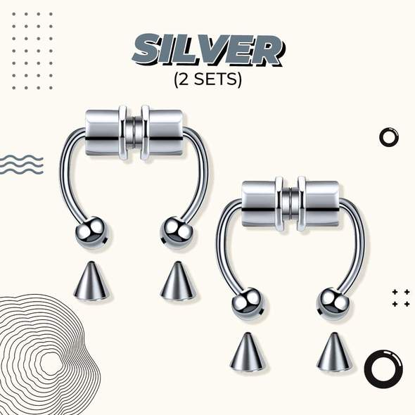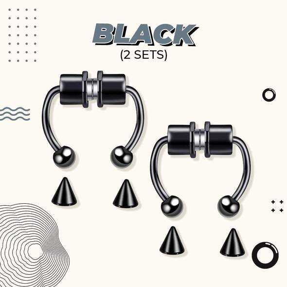 - Non-Piercing – Gives the illusion of a septum piercing without need for an actual piercing. No pain, no commitment.