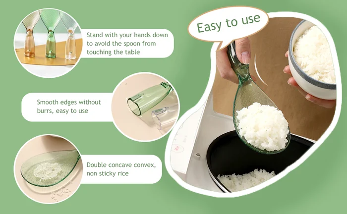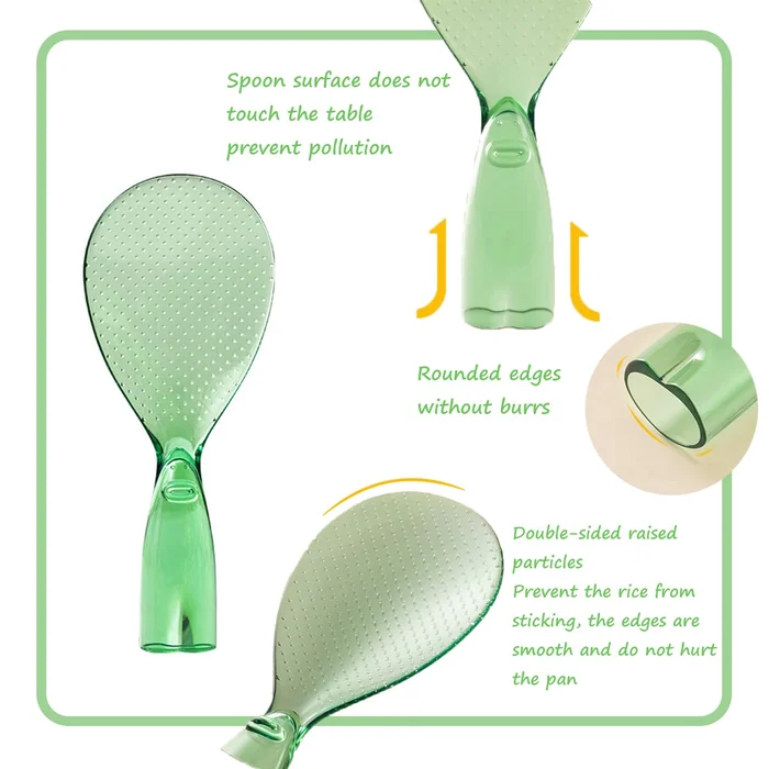 High-Quality Material: Rice spoon is made of high-quality PC material, the edges are rounded without burrs, with raised particles on both sides to prevent rice from sticking, and the edges are smooth and do not hurt the pot.