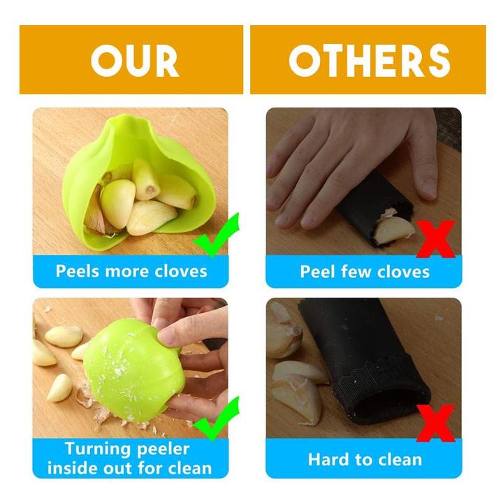 Odor-free Press Garlic Peeler is SPECIALLY DESIGNED to PEEL MULTIPLE GARLIC CLOVES QUICKLY and EASILY. It can fit in MULTIPLE GARLIC CLOVES and PEELS ALL THE CLOVES in ONE PRESS and several rolls. It PREVENTS to ODOR of the GARLIC to STAY on your HANDS. SAVES YOUR TIME from TRADITIONAL PEELING and will let you have a MESS FREE KITCHEN.