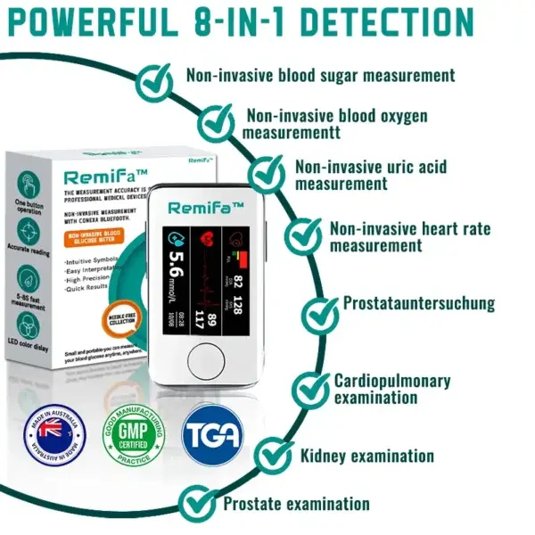 Say goodbye to finger pricks! With Remifa™ Non-Invasive Glucose Monitor, you can effortlessly monitor your blood glucose levels in a safe, convenient, and pain-free way.