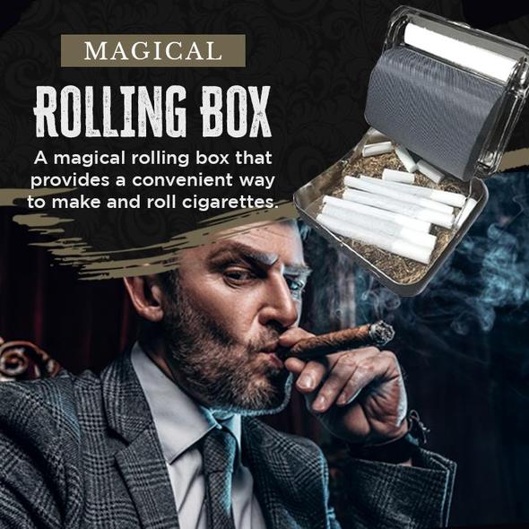 - One Sec Rolling – Simply insert paper and tobacco into the mechanism and close the box to receive a perfectly rolled cigarette.