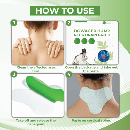 DowagerHump NeckDrain Patch is VERY EASY to USE. It is GUARANTEED SAFE to ANY SKIN TYPES. It is SUITABLE for both Men and Women. It is IDEAL for People with Dowager’s Hump, Stiff Neck, Strained Muscles and more.