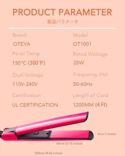 OTEYA 2-in-1 Hair Curler and Straightener Portable Small Size Easy To Carry