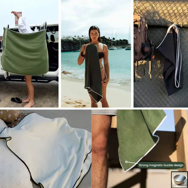 Say goodbye to the hassle of slipping bath towels and sand sticking to your towel when enjoying the outdoors! The Outdoor Magnetic Bath Towel is designed for ultimate convenience, providing stability, quick-drying properties, and sand-proof features. Whether you’re at the beach, camping, or just enjoying the great outdoors, this towel is a must-have!