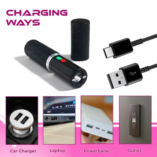 It’s rechargeable and durable design. It comes with a rechargeable battery and charging cable, giving you the convenience of not having to replace it. Micro USB charging port allows charging via PC, wall block, or car charger, you don’t need to buy any expensive batteries. The battery remains charged for 60 days unless you use it. It is also made with an aluminum body, making it highly durable and able to withstand wear and tear. With this kind of design, you can be sure that your lipstick stun gun will last you a long time.