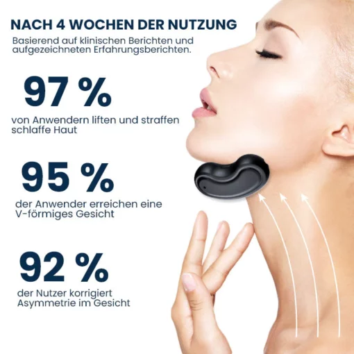 Sie können jetzt ganz bequem von zu Hause aus Ihre Wangenknochen modellieren, Ihre Kieferpartie anheben oder Ihr Gesicht insgesamt schlanker gestalten – ohne Termin beim Dermatologen! Dieses innovative Gerät wurde entwickelt, um schlaffe Kinnhaut zu verbessern und lose Haut zu straffen und Ihnen ein jüngeres, strahlenderes Aussehen zu verleihen.