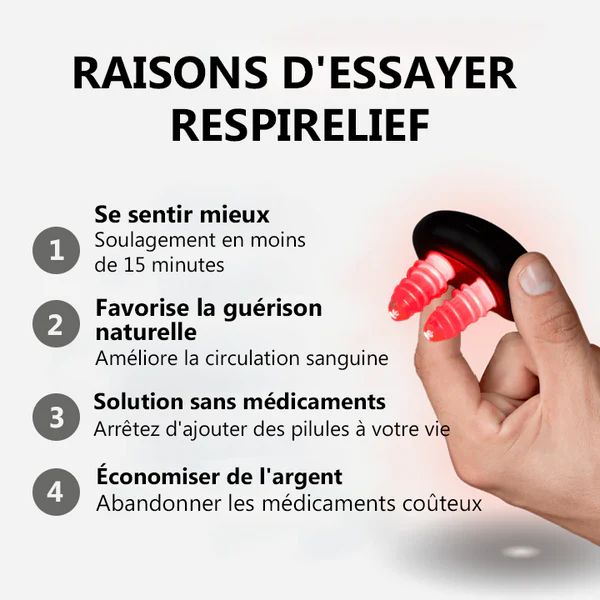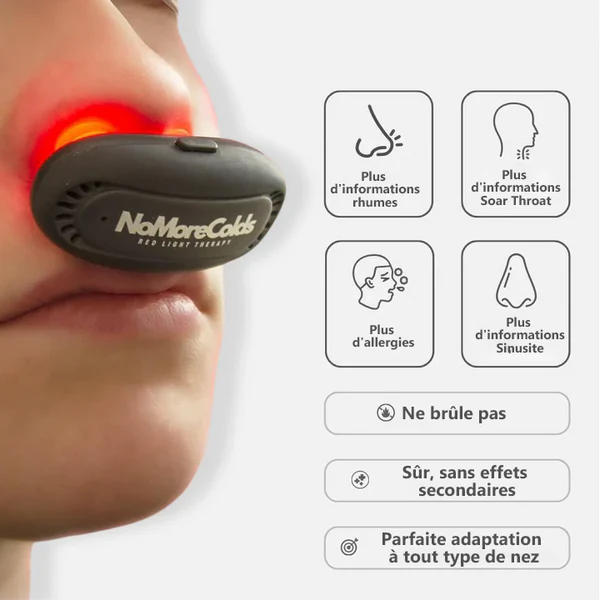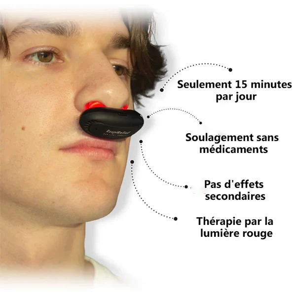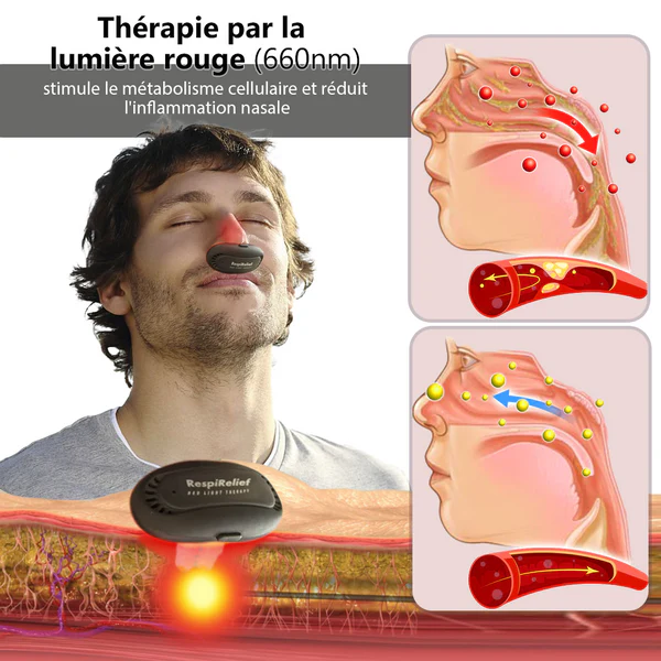 Vous luttez contre les rhumes persistants, la sinusite ou les allergies ? Pas de soucis ! RespiRelief, alimenté par une thérapie avancée à la lumière rouge, est votre solution rapide et efficace pour soulager les rhumes et la sinusite.