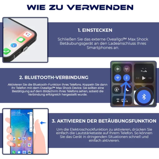 • Attach the Oveallgo™ Max Shock External Stun Device to the charging port of your smartphone