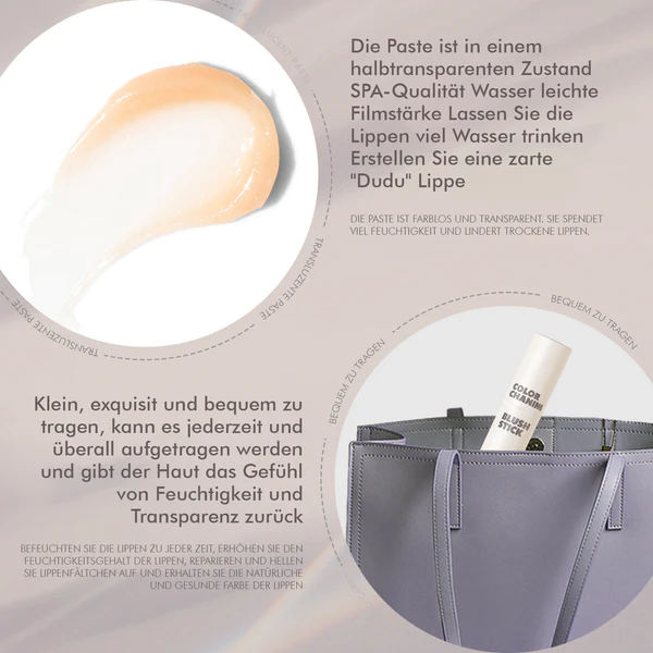 【Adaptive & sanfte Formulierung】Erleben Sie ein Produkt, das sich natürlich mit Ihrer Haut verbindet und ein jugendliches, lebendiges Erscheinungsbild bietet. Dieser Rouge-Stick passt sich Ihrer Körpertemperatur an und wechselt zwischen verschiedenen Rosatönen, um perfekt zu Ihren Lippen, Wangen oder sogar als Lidschatten zu passen. Seine sanfte Formel ist frei von harten Chemikalien, Duftstoffen und Farbstoffen und garantiert eine saubere Anwendung ohne Rückstände. Maximieren Sie seine Vorteile, indem Sie vor Gebrauch feuchtigkeitsspenden.