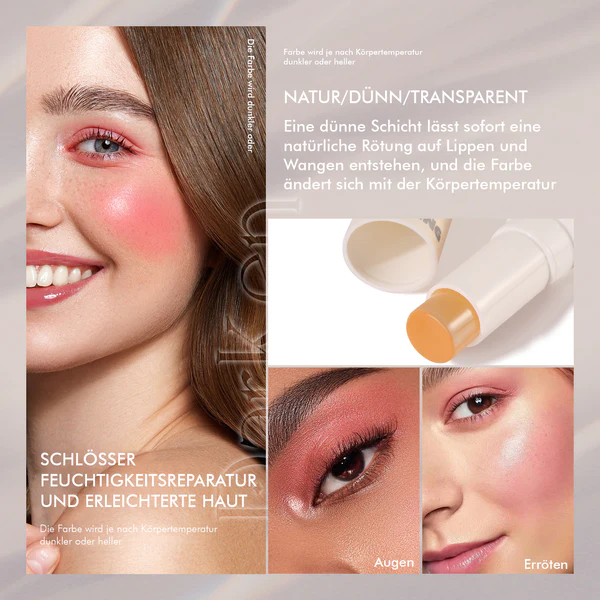 【Vielseitiger Farbwechsel-Rouge-Stick】Verwandeln Sie Ihren Look mit diesem dynamischen Rouge-Stick, der seine Farbe für die Anwendung auf Augen, Wangen und Lippen anpasst. Perfekt, um den gewünschten Lidschatten, Rouge oder Lippenstift zu erzielen, gleitet dieser Creme-Stick sanft für ein natürliches, strahlendes Finish. Verbessern Sie Ihren Teint mit einem einzigen Strich und verleihen Sie Ihrem Make-up einen zusätzlichen Hauch von Charme.