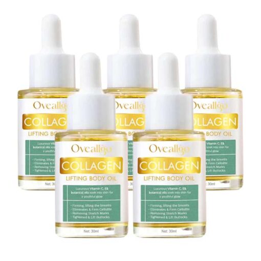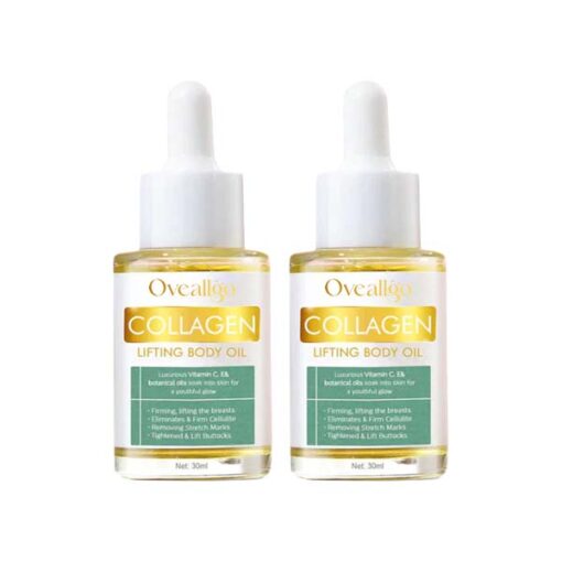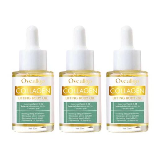 Wählen Sie Oveallgo™ BeautyWomen Kollagen-Lifting-Körperöl, wenn Sie das Erscheinungsbild schlaffer und alternder Haut verbessern möchten. Dieses Körperöl enthält eine kraftvolle Kombination aus Kollagen, Moringaöl und Vitamin E, die hilft, Problemzonen wie Brüste, Gesäß, Bauch, Oberschenkel und Oberarme zu festigen und zu straffen. Seine nicht fettende und schnell einziehende Formel hinterlässt eine glatte, hydratisierte und strahlende Haut. Bei regelmäßiger Anwendung kann dieses Körperöl dazu beitragen, das Auftreten von feinen Linien und Fältchen zu reduzieren und die allgemeine Elastizität und Spannkraft der Haut zu verbessern. Für beste Ergebnisse einfach nach dem Duschen oder Baden auftragen.