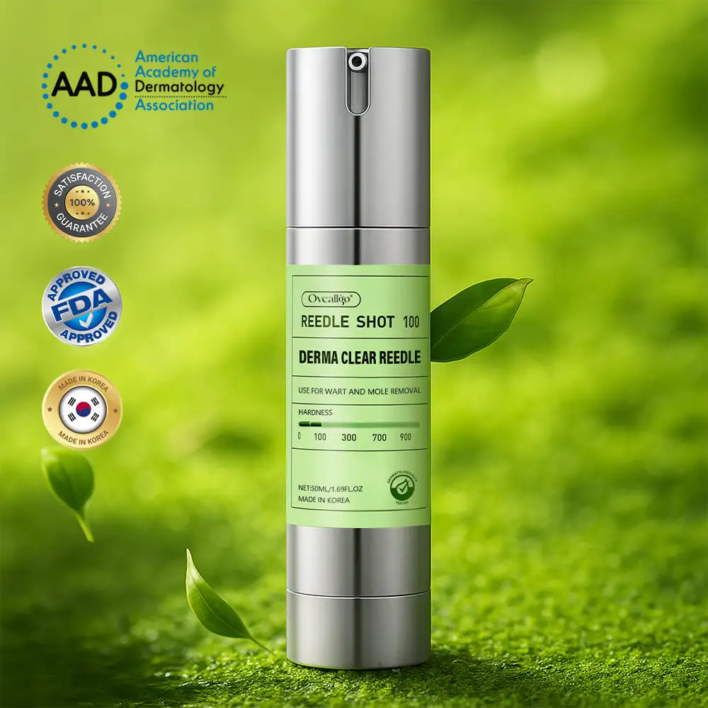 Oveallgo® Korean DermaClear Reedle Shot 100 Wart & Mole Eraser Serum offers a safe, painless, and scar-free alternative to traditional removal methods like freezing, burning, or surgery.