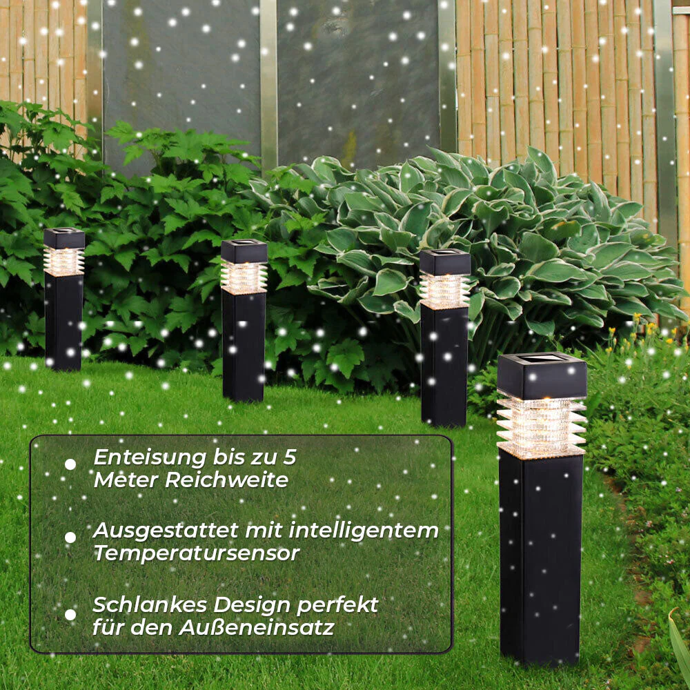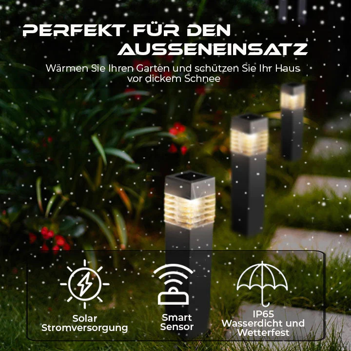 Intelligenter Temperatursensor: Das Oveallgo™ EcoThaw Solarbetriebenes Enteisungslicht verfügt über modernste intelligente Temperaturerfassungstechnologie, die seine Leistung auf ein Niveau von Raffinesse hebt, das es abhebt. Dieses innovative System erhöht nicht nur seinen ästhetischen Reiz, sondern dient auch einem sehr praktischen Zweck. Wenn der intelligente Sensor einen Temperaturabfall erkennt, löst er den wärmegenerierenden Mechanismus aus. Dieser Mechanismus nutzt die Kraft der Solarenergie, um nicht nur Ihre Umgebung zu beleuchten, sondern auch eine wohltuende Wärme auszustrahlen, die effektiv eine gemütliche und einladende Umgebung für Ihre Innen- und Außenbereiche sicherstellt. Mit dem Oveallgo™ EcoThaw Solarbetriebenes Enteisungslicht können Sie die perfekte Mischung aus Stil und Funktionalität genießen und schaffen eine einladende Atmosphäre auch bei kaltem Wetter.