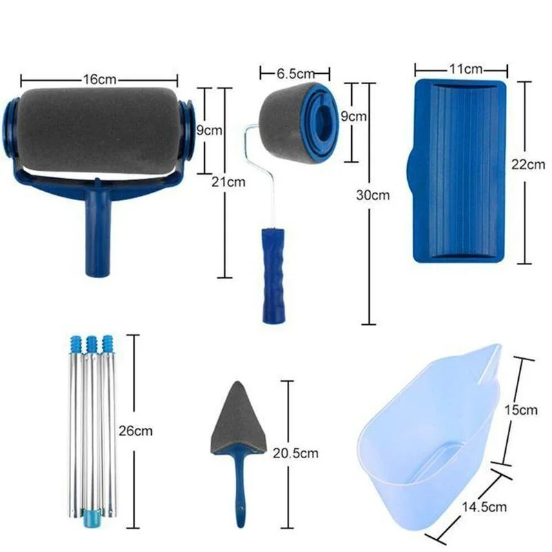 • 8 Packs: 1 x roller paint pro;1 x flocked edger;1 x corner pad;1 x resting tray;1 x easy-pour-jug;3 x extension handle