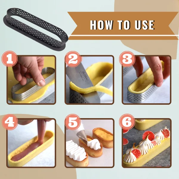 Prevent wasting pastry due to failed molding! Want to bake like a PRO? Get perfectly cut oval tarts by molding them using this PastryPRO Oval Tart RingMold (3pcs Set)!