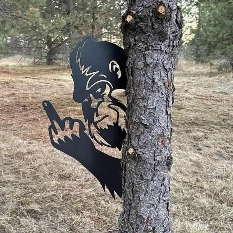 Peeking Bigfoot Flipping Off Sign – Funny & Bold Outdoor Décor
