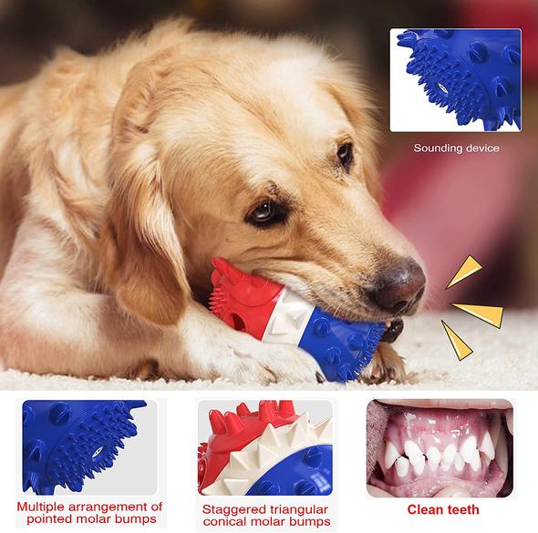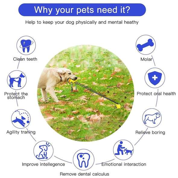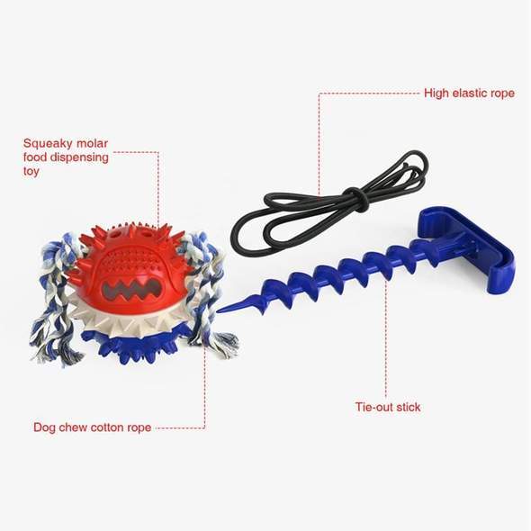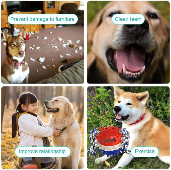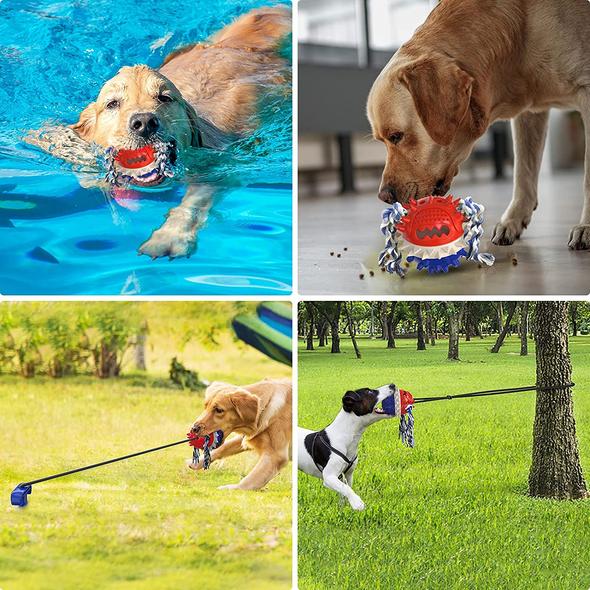 PERFECT DESIGN–This is a multifunctional toy for dogs to play outdoor. It integrates the functions of tug-of-war, squeaking, leaking food, molar and dog chew cotton rope, which brings a more happy experience to medium and big dogs.