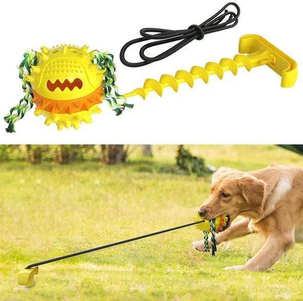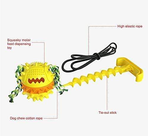 WIDELY USED— The dog tie-outs & stakes toy is designed with a powerful tetherball with high elastic rope, You can fix the tie-out stick on many different occasions, such as front or back yard, park, soccer field, or rope on a tree or a stable pole. Also, you can hold the end of the rope to play with your dog that promotes your relationship.