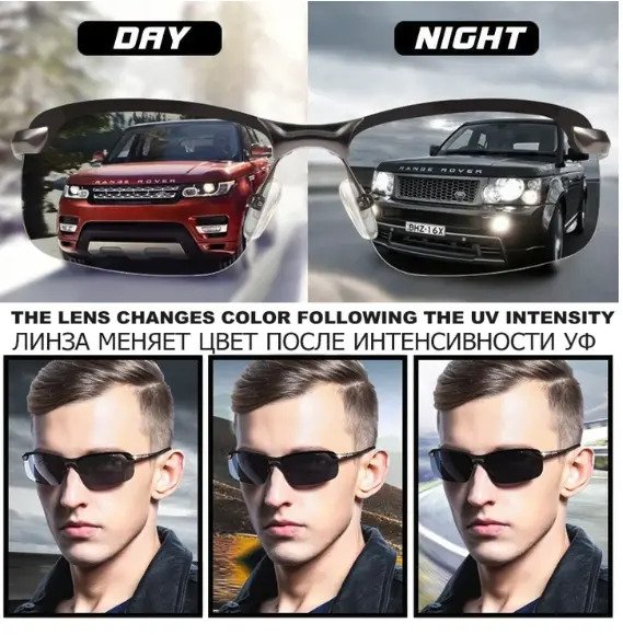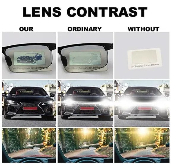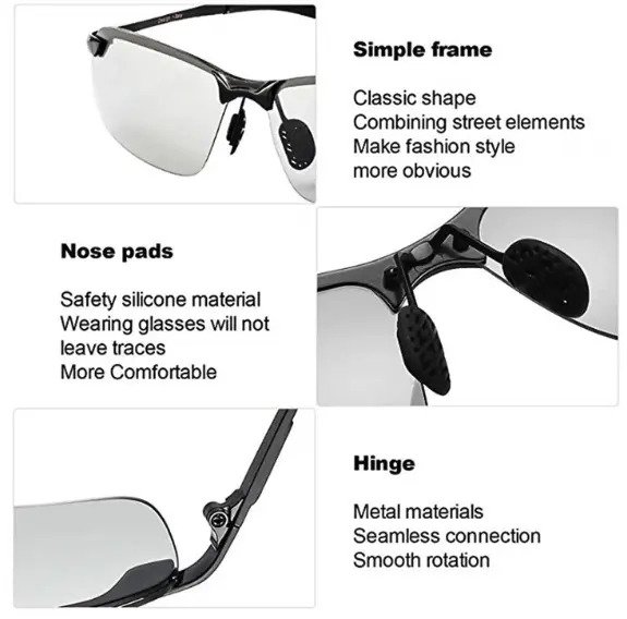 When driving at night or into a dark environment, the lenses are light-colored transparent to enhancing visibility while effectively reducing the glare.