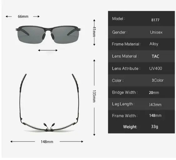 - 1 x Photochromic Sunglasses With Polarized Lens