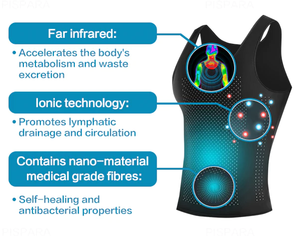 The PISPARA™ Ice Silk Shape Compression Vest combines far infrared and ion technology to provide a multi-dimensional massage and stimulation to improve blood and lymphatic circulation, while the tourmaline on the PISPARA™ vest generates infrared rays and negative ions that have a gentle stimulating and soothing effect on the body, helping to restore the user’s healthy body shape.