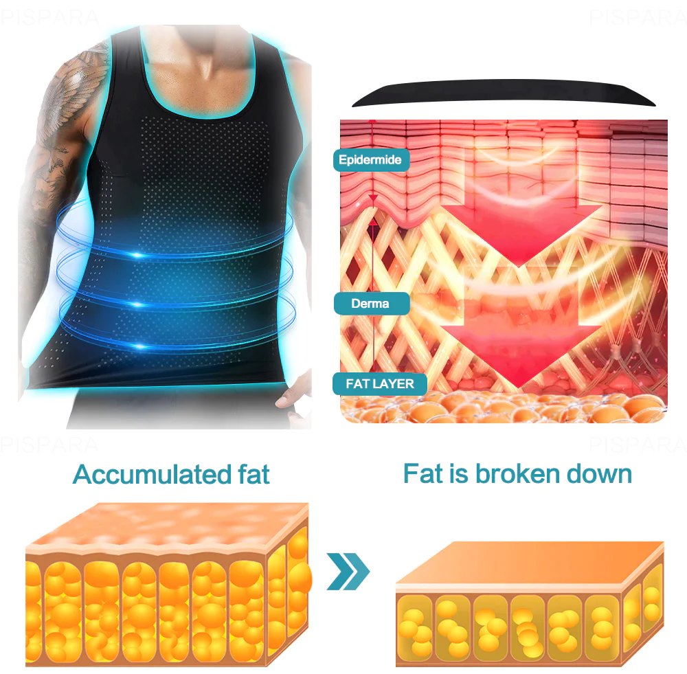 The PISPARA™ Men’s Ice Silk Shape Compression Vest is designed to help men reduce the accumulation of fatty tissue in the chest, specifically targeting gynecomastia issues. This vest combines far infrared and tourmaline technology to reduce chest fat more effectively and prevent fat cells from re-accumulating in the area, ultimately resulting in a full body shaping effect.The overall fabric is composed of nano-grade ice silk fibers, so you can always stay cool in the heat of summer.