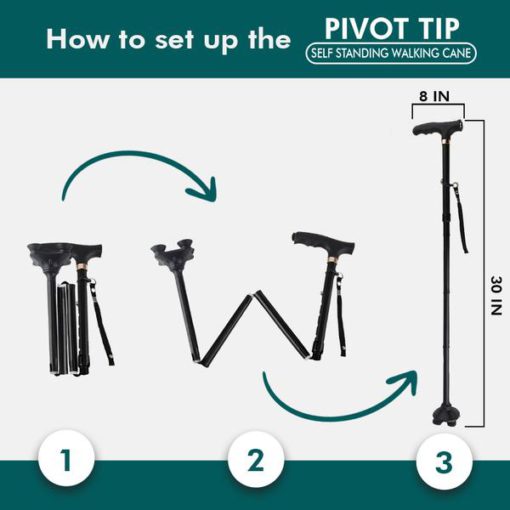 Protect your love one’s safety with this easy to use and reliable Pivot Tip Self Standing Walking Cane. Perfect for seniors, elderly and injured persons!