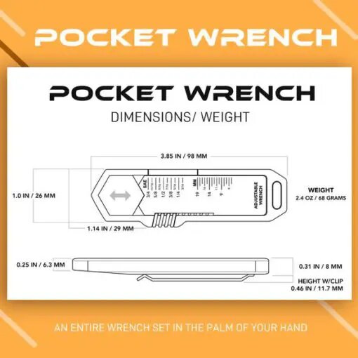 Typically, an adjustable wrench isn’t the most portable thing in the world…until now. At just under 4 inches long, our Supower wrench is perfect for everyday carry. It’s small enough to ride in your pocket and get into tight spaces, but just big enough for a comfortable grip. The wrench is infinitely adjustable from 3/16 to 3/4”, metric sizes included. Simply turn the thumb screw to adjust the Supower wrench to the desired size, and get to work.