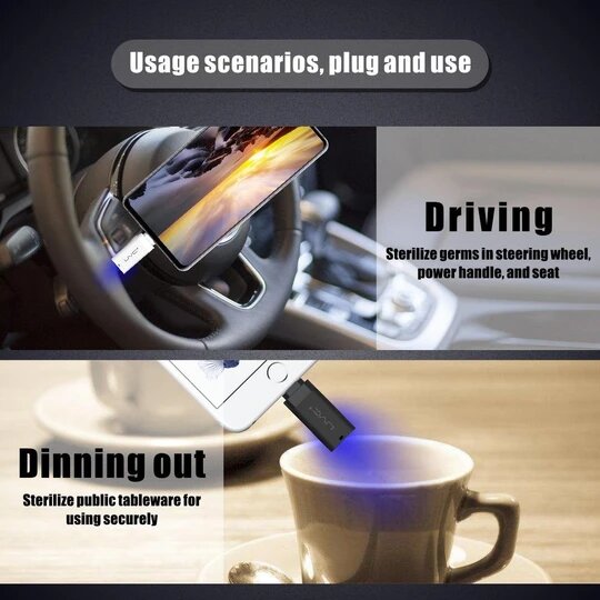 Portable Disinfectant USB is SUPER LIGHTWEIGHT and COMPACT, its TRAVEL SIZE making it EASY and CONVENIENT to CARRY with you ANYTIME, ANYWHERE. This DEVICE can last up to 5000 OPERATING HOURS. It is VERY EASY to USE just PLUG it into your SMARTPHONES and be READY to ZAP OUT GERMS and VIRUSES. It is IDEAL for ALL AGES.