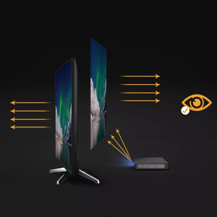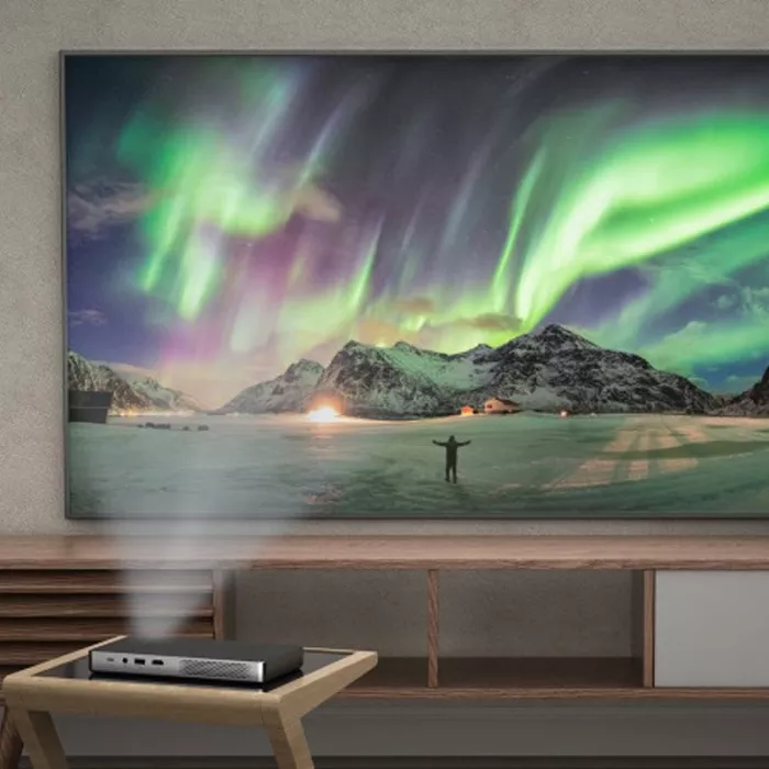 This is the first time that a film-grade laser has been miniaturized into an ultraportable projector that can be put in a pocket. Small size but powerful.
