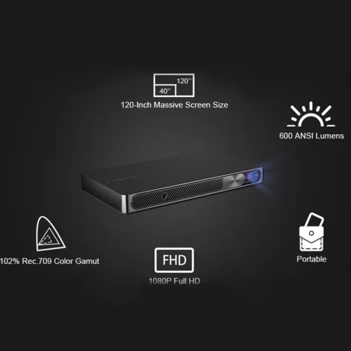 With the thickness of less than 1 inch and the weight of only 1.72 pounds, it is the ultimate portable projector you can take with you! It can bring you entertainment every step of the way, whether you are in the office, camping, going out, or even in the car!