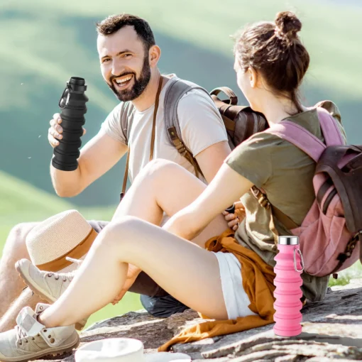 Portable Design: Collapsible and foldable silicone water bottle with carabiner for easy travel and sports