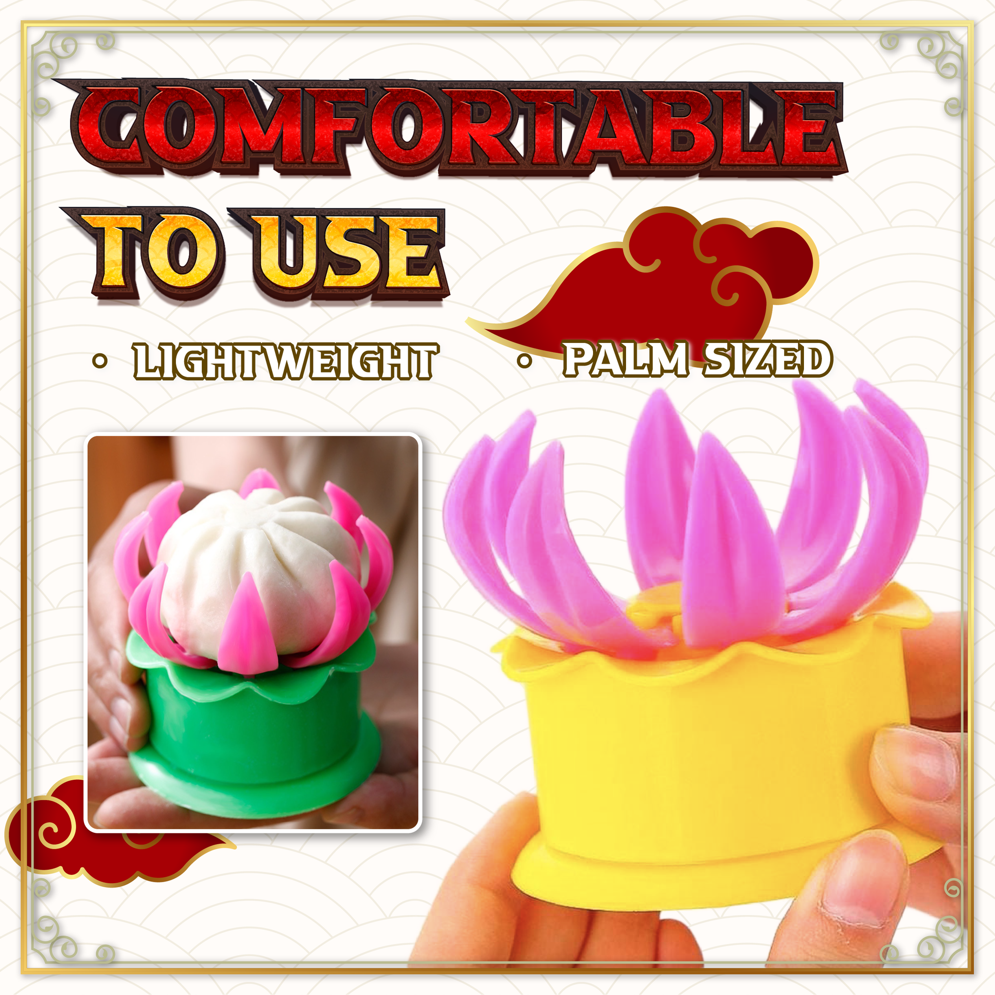 The bun maker mold is so light and is palm sized! It can be held and used comfortably for an extended time. Allowing you to make lots of filled buns in a breeze to fill all your friends and families appetite! Ideal for kids, beginners, professional and steamed bun lovers! The mold is made of food-grade material with extreme durability, perfect for everyday bun making.