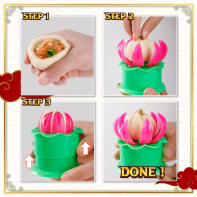 This unique flowerlike press creates perfectly shaped dough circles every time! Allowing you to make your own steamed bun at home like a pro while making it more enjoyable. Simply stuffed the meat fillings into the dough, put it in the mold and pull down the bottom leaf to close. Once done, push it back up to open, take out the bun and you’re now ready to steamed it! No more constant dough reshaping, create as many delicious filled buns as you want in a breeze!
