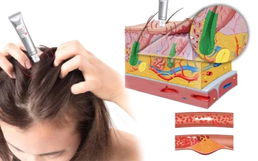 MINOXIDIL is a topical medication used to treat hair loss. And it is an FDA-approved ingredient that is safe to use. Its purpose is to dilate blood vessels and improve blood flow to the area where it is applied, thereby increasing its ability to deliver nutrients and oxygen to the hair follicles. Minoxidil also helps increase the size of hair follicles, which promotes the growth of thicker, stronger hair.