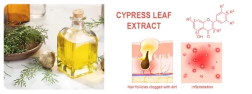 CYPRESS LEAF EXTRACT is an excellent scalp care ingredient that provides multiple benefits to the scalp such as soothing, cleansing, regulating equilibrium, stimulating circulation, and nourishing and moisturizing the scalp. It is rich in vitamins and minerals that provide nutrients to the scalp and enhance hair strength and shine. Meanwhile, Sidekick Leaf Extract contains natural cleansing ingredients that effectively remove oil, dirt and residue from the scalp, keeping it fresh and clean. In addition, it has anti-inflammatory properties that help reduce scalp inflammation and discomfort, soothing scalp sensitivity and redness.