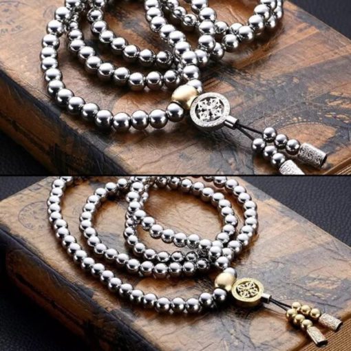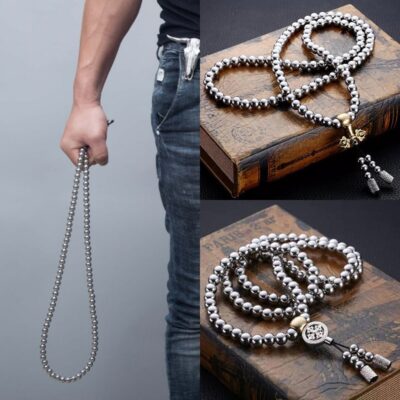 Our Protective Buddha Necklace a stylishly practical accessory that can easily transform from a luxury necklace to a fully functional chain whip or brass knuckles made with the steel alloy cord and brass beads!