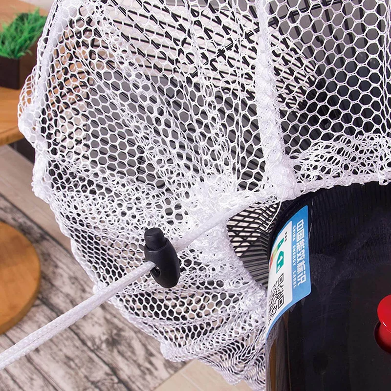 Material: Round electric fan dust cover made of polyester, durable, mesh design, it does allow air to pass through. The fan shield is small in size, easy to clean, easy to store and can be used for a long time.