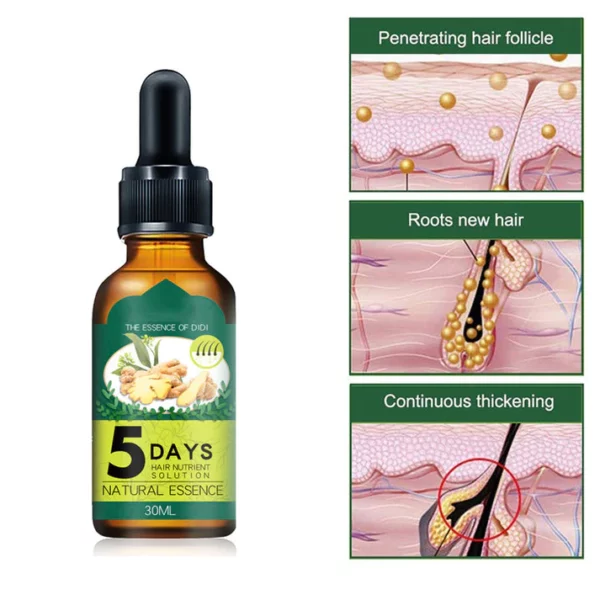 Ginger essence has been traditionally used to reduce hair loss and promote hair growth, and scientific studies have shown promising results. The antioxidants and circulatory agents in ginger help stimulate blood circulation, leading to improved nourishment of hair follicles and promoting healthy hair growth. Ginger extract has been shown to reduce oxidative stress and improve hair growth rates, while the active ingredient gingerol helps relax blood vessels and improve blood circulation.