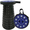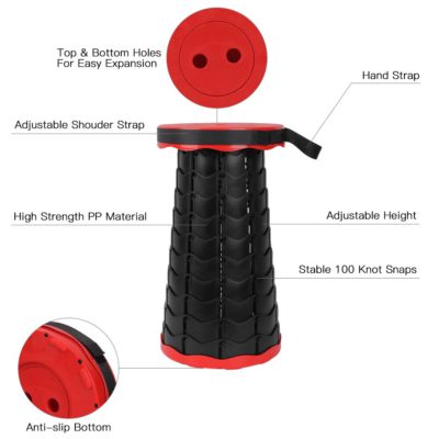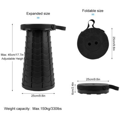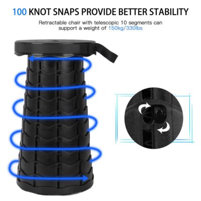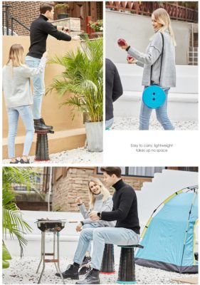 Safe and stable. Made of high-strength heavy-duty environmental friendly material plastic PA+ABS, the cylinder shape structure, tight connecting clasps, and the non-slip base ensure that this collapsable stool will give the stability to provide safe and comfortable sitting. The maximum load capacity is as much as 350 lbs! ATTENTION: Please sit in the center of the seat. DO NOT sit on the edge of the seat. DO NOT tilt the stool. not sweep down!