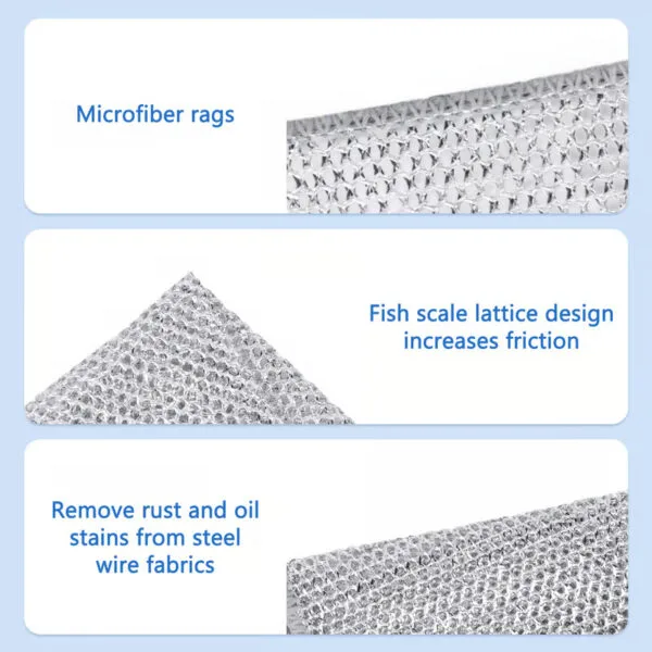 Made from high-quality fabric and silver mesh, each cloth measures 7.87 x 7.87 inches (20 x 20 cm). The diamond-weave pattern creates rich lather, making it easy to remove grease and grime from pots, pans, and other kitchen surfaces. These cloths are designed to withstand repeated use and last longer.
