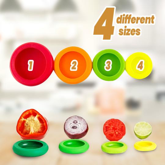💥 VERSATILE: 4 sizes will fit COVERS CONTAINERS 2″-4″ SIZES: such as a bowl, cups, glassware, pyrex, jar, food can, instant pot, crockpots. FRUITS and VEGETABLES: papaya, pineapple, cantaloupe, lemon, onions or other fruits and vegetables.
