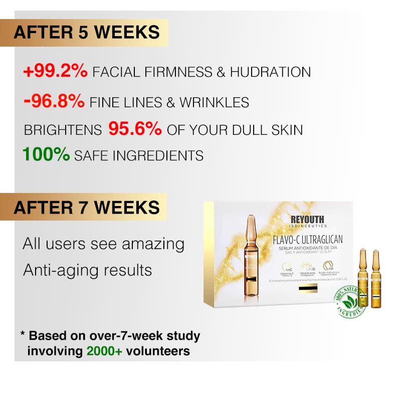 “ReYouth Vitamin C&Hyaluronic Acid Anti-Aging Serum ampoule deliver what they promise. My skin has never looked this beautiful since before I began my menopausal years. My pores are shrinking, and my wrinkles are gently smoothing out.It is by far the very best skin care line on the market.” – Hannah Glenn, 65 / Los Angeles