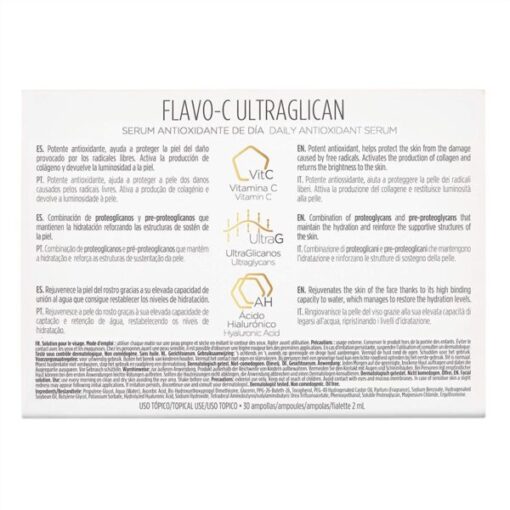 Flavo-C Ultraglican ampoules come with a special applicator tip and resealable cap. After use, seal the ampoule with the cap and keep it in an upright position in a safe place where it cannot be knocked over. As Flavo-C Ultraglican ampoules contain vitamin C, after opening they should be stored out of direct sunlight.