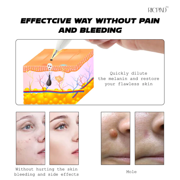 Lighten your skin and clear away blemishes in just seconds with the new Ricpind Instant SpotRemoval Cosmetic Electric Pen. This unique dermatological device is designed by medical experts to quickly remove spots, acne, freckles, and other imperfections from your face and body.