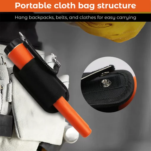 Compact and easy to carry, this metal detector is designed for one-handed use without requiring adjustments. It comes with a leather holster and wire rope, allowing convenient hanging on a belt or bag for quick accessibility. The lightweight and portable design ensures hassle-free transportation and immediate availability whenever needed.