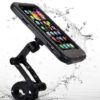 【Simple & Firm & Stable】Bicycle motorcycle scooter mobile phone holder is made of ABS waterproof material, light and durable, gives you an innovative feeling. The built-in rubber pads on the arm protect your phone from scratches. Finally achieve the purpose of easy operation, safe and firm. Suitable for all city streets and rugged mountain roads.