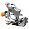 Ruffler foot makes perfectly sized pleats and stitches to hold them in place. All you do is run your fabric through the Ruffler once and all of your fabric is perfectly gathered and ready to attach. It works best with light to medium weight fabrics.